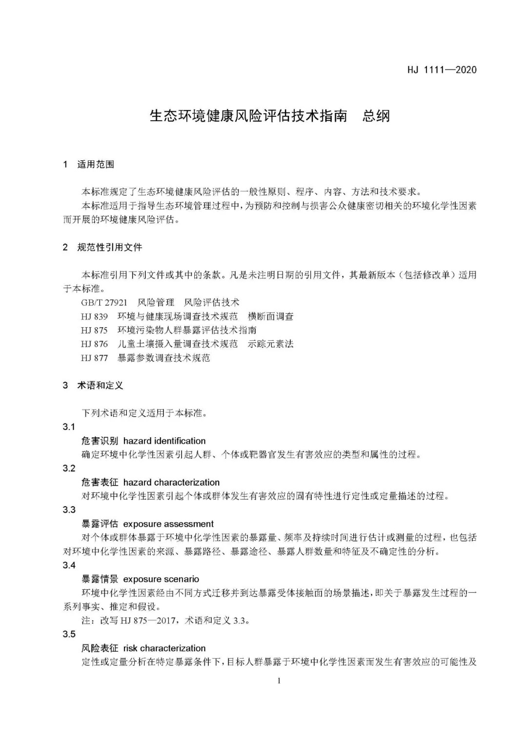《生態(tài)環(huán)境健康風險評估技術(shù)指南 總綱》(HJ 1111—2020)。