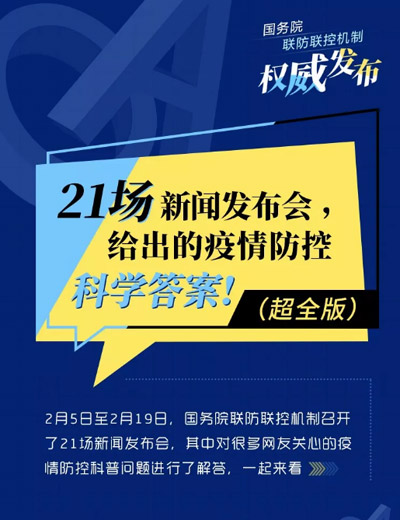 2月5日至2月19日,國務院聯防聯控機制召開了21場新聞發布會,其中對很多網友關心的疫情防控科普問題進行了解答,一起來看。